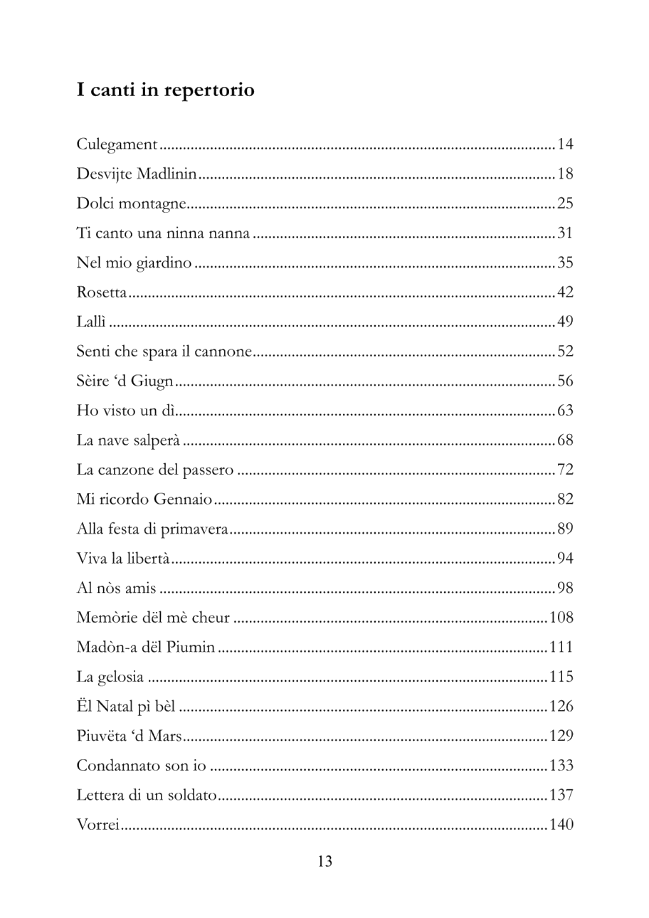 I canti in repertorio - Coro La Campgnola